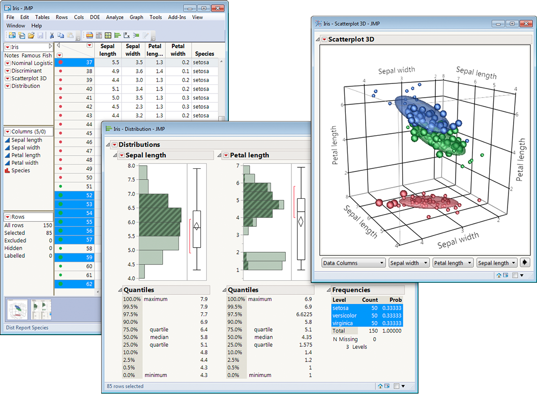JMP 是一款功能强大的统计分析软件,支持多种数据分析和建模功能。它不仅提供传统的回归分析、聚类分析等常规统计方法,还支持 神经网络训练 和 三维曲面渲染,使得用户能够处理更加复杂的数据建模任务和进行数据的可视化分析。